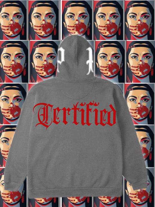 M.M.I.W. Full Zip Rhinestone Hoodie Gray